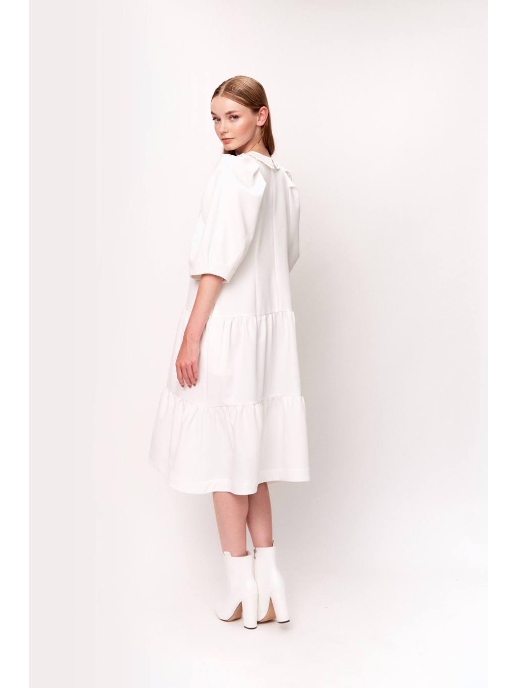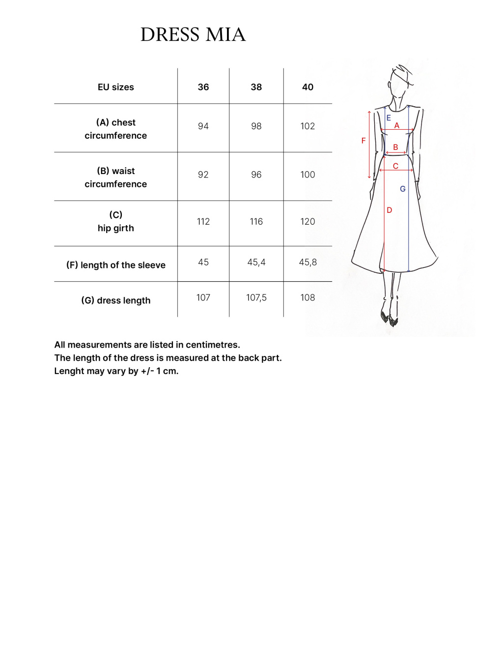 Modelka měří 175 cm a má na sobě velikost 36.